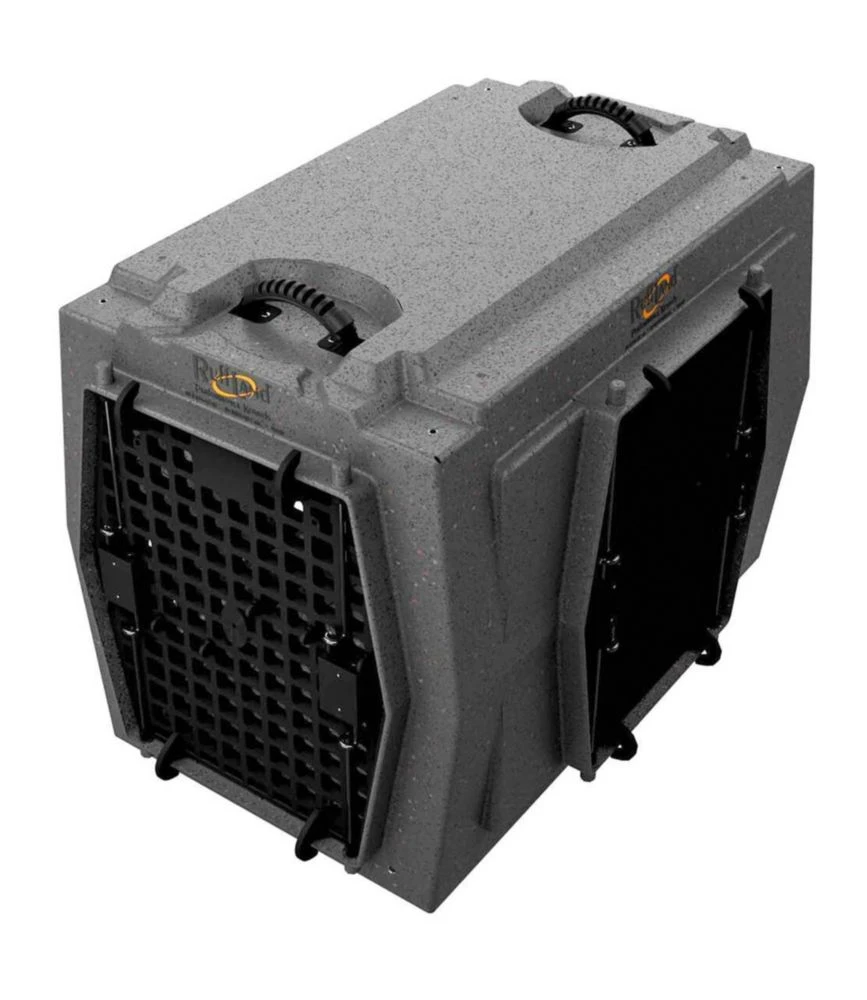 Traveling with your dog is easier than ever — this stackable, ultra tough Ruff Land™ dog kennel features two doors for easy access.