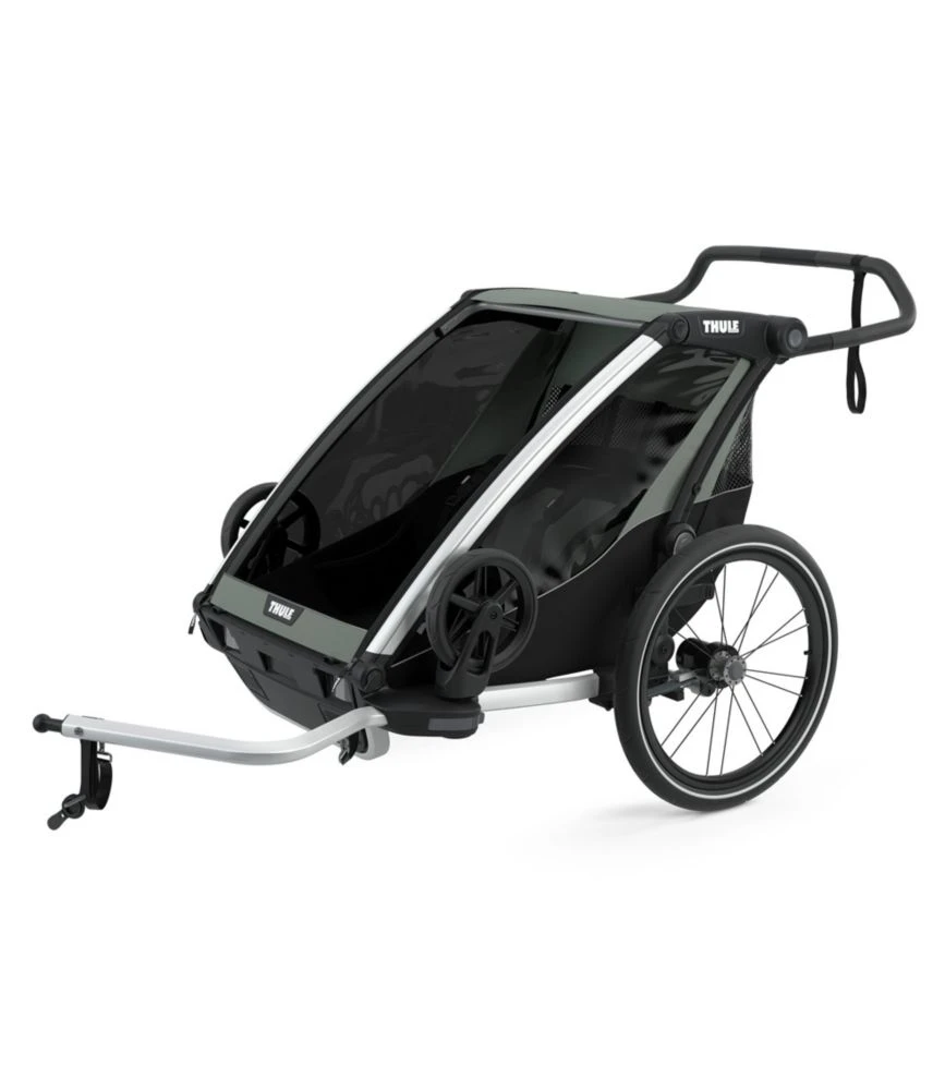 This lightweight, durable stroller lets you comfortably bring your children on everyday adventures. Conveniently functions as a stroller and bike trailer; optional kits can be purchased from Thule for skiing and jogging.
